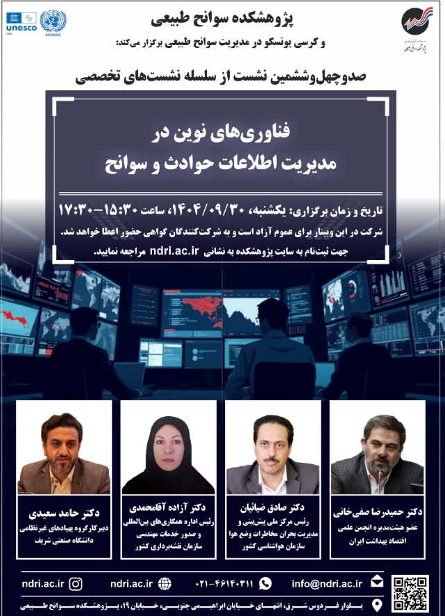 نشست فن آوری نوین در مدیریت اطلاعات حوادث وسوانح ۳۰ آذر ۱۴۰۴ | ۱۲:۰۴ کد : ۵۷۱۴۹ اطلاعیه ارسال به دیگران نام شما ایمیل شما ایمیل دریافتکننده ارسال انصراف تعداد بازدید:۷۸ دعوتنامه نشست فن آوری نوین در مدیریت اطلاعات حوادث وسوانح