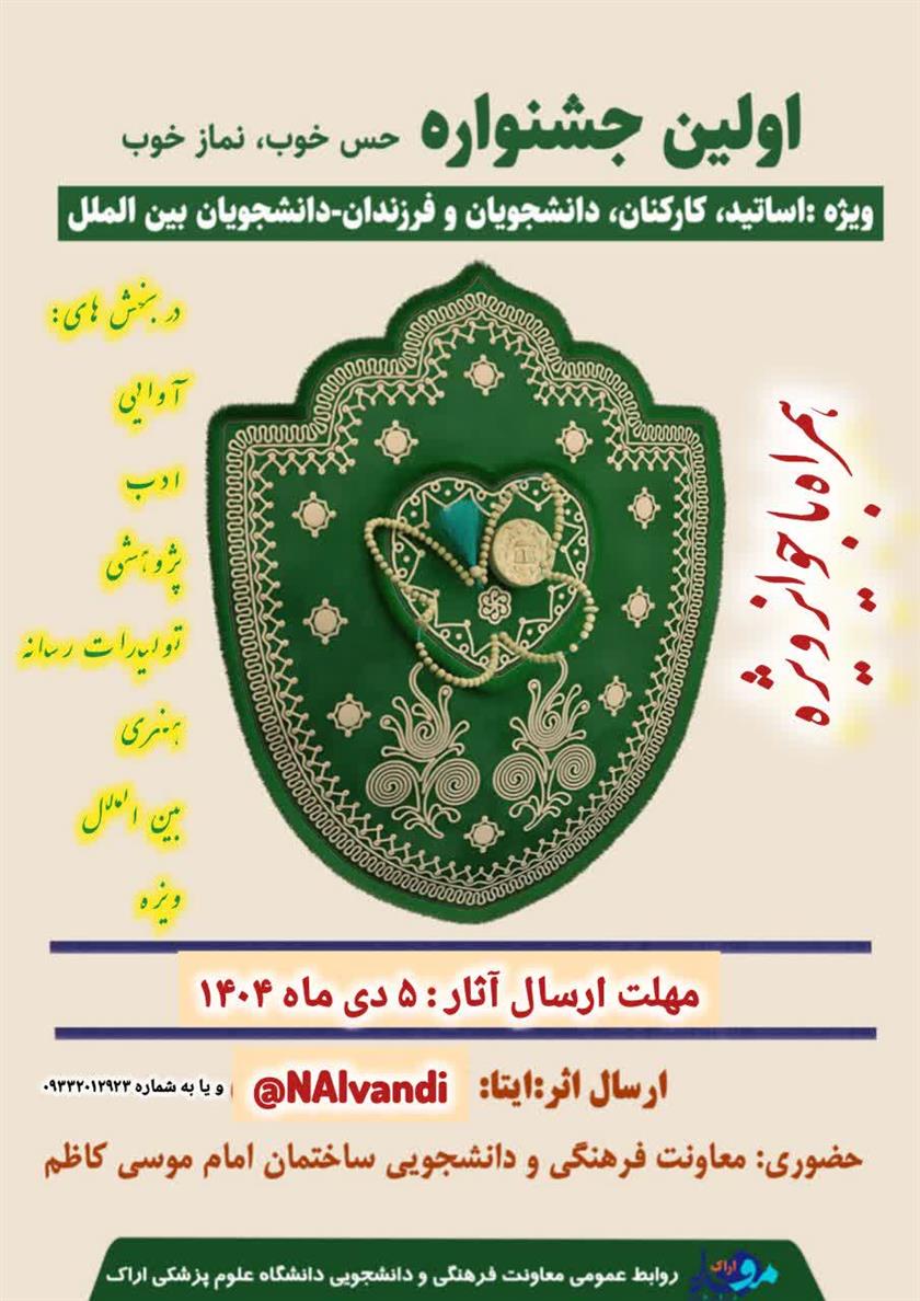اولین جشنواره حس خوب، نماز خوب، در دانشگاه علوم پزشکی اراک برگزار می گردد.