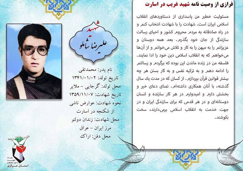 فرازی از وصیت نامه شهدا ۰۵ بهمن ۱۴۰۴ | ۰۹:۴۵ کد : ۵۷۶۸۳ اطلاعیه ارسال به دیگران نام شما ایمیل شما ایمیل دریافتکننده ارسال انصراف تعداد بازدید:۲۳۱ فرازی از وصیت نامه شهدا فرازی از وصیت نامه شهید بزرگوار علیرضا شاملو :