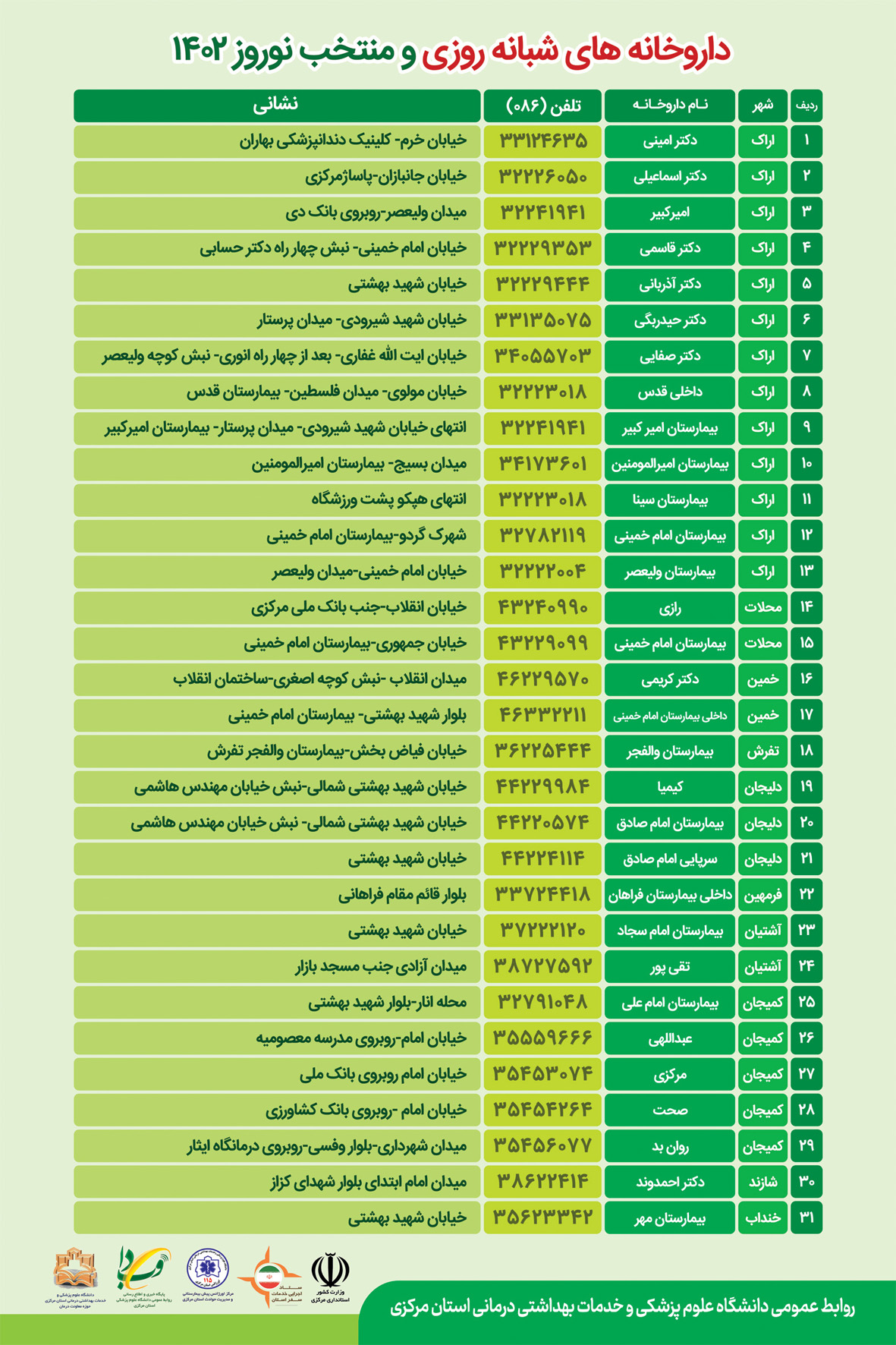 داروخانه های شبانه روزی و منتخب نوروز ۱۴۰۲ تعداد بازدید:۵۷۵ ارسال به دیگران نام شما ایمیل شما ایمیل دریافتکننده ارسال انصراف